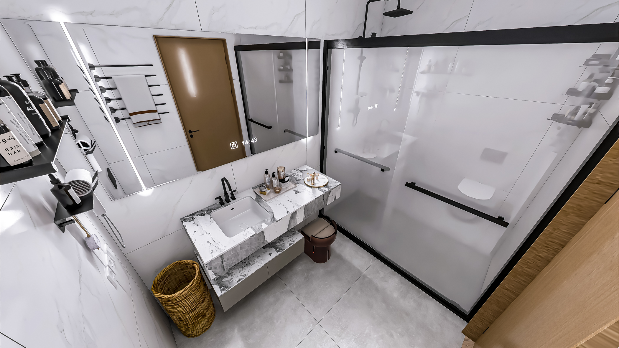 alubond i demit fasada, spoljna PVC stolarija sa aluminijumskim roletnama,