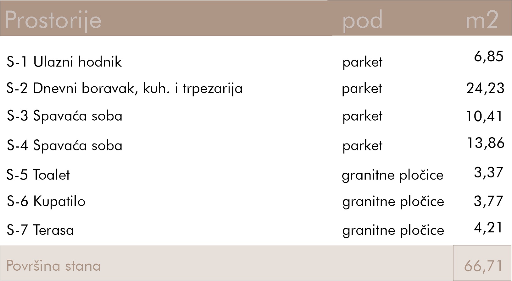 Kvadratura: 66,72m2 (ukupna), 66,72m2 (uknjižena)