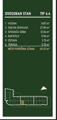 Kvadratura: 60,01m2 (ukupna), 60,01m2 (uknjižena)