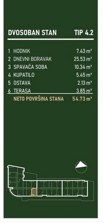 Kvadratura: 55,29m2 (ukupna), 55,29m2 (uknjižena)