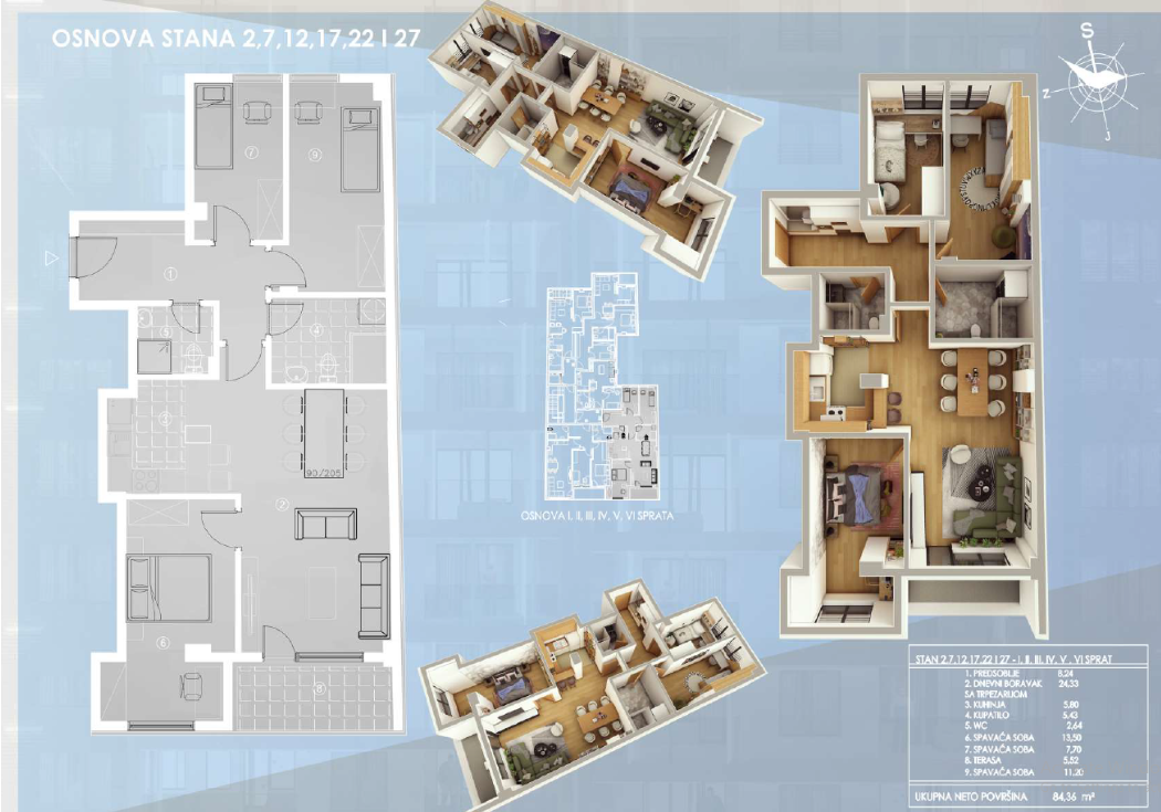 Moderan stambeno-poslovni objekat PO+P+VIII i PO+P+VI, na najtraženijoj lokaciji. Lokacija je idealna jer se nalazi na svega pet minuta od pešačke zone i centra grada, a blizina obrazovnih ustanova i drugih uslužnih delatnosti čini ovu novogradnju neodoljivom za porodice sa decom, kao i za investiranje. Ako tražite nekretninu koja može da se rentira, njen položaj je garant i uspešnog izdavanja. Zgrada je projektovana po sistemu visoko efikasnih standarda, korišćenjem kvalitetnih građevinskih materijala sa dobrim termoizolacionim svojstvima (termobloka 25cm+stiropora 12cm+demit fasade ). ALU stolarija u crnoj mat boji sa aluminijumskim roletnama. U kupatilu i kuhinji je postavljena keramika renomiranog proizvođača ( dimenzije 120x60 ) , na podu je tarket parket, grejanje je etažno. Stanovi su orijentisani tako da imaju adekvatnu funkcionalnost i raspored u odnosu na kvadraturu. Stanovi su dobro osvetljeni, velike staklene površine kao i staklene ograde na terasama daju bolju osvetljenost unutar stambenog prostora. Parking mesta se posebno kupuju. KUPOVINA BEZ PROVIZIJE ZA KUPCA. Kupci prve nekretnine imaju pravo na povraćaj PDV-a.