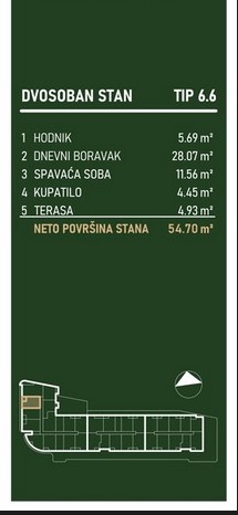 Kvadratura: 55,01m2 (ukupna), 55,01m2 (uknjižena)
