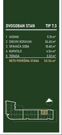 Kvadratura: 49,28m2 (ukupna), 49,28m2 (uknjižena)