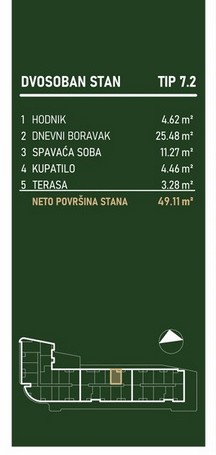 Kvadratura: 49,25m2 (ukupna), 49,25m2 (uknjižena)