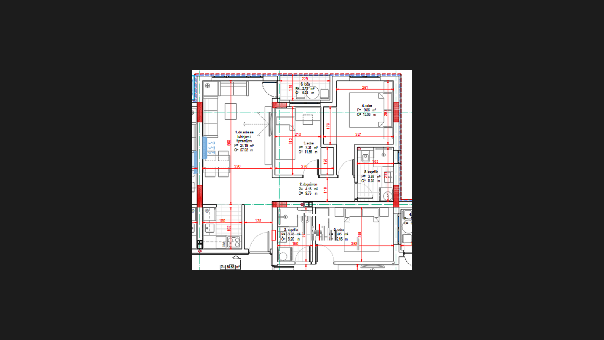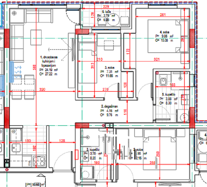 Kvadratura: 50,68m2 (ukupna), 50,68m2 (uknjižena)