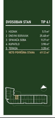 Kvadratura: 49,12m2 (ukupna), 49,12m2 (uknjižena)