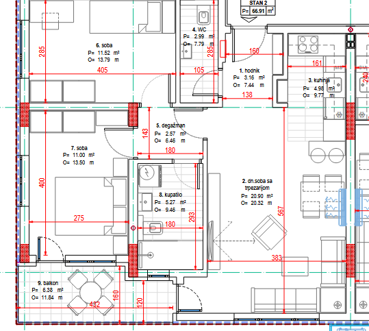 Kvadratura: 66,91m2 (ukupna), 66,91m2 (uknjižena)