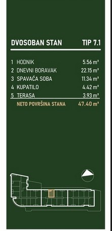 Kvadratura: 47,40m2 (ukupna), 47,40m2 (uknjižena)