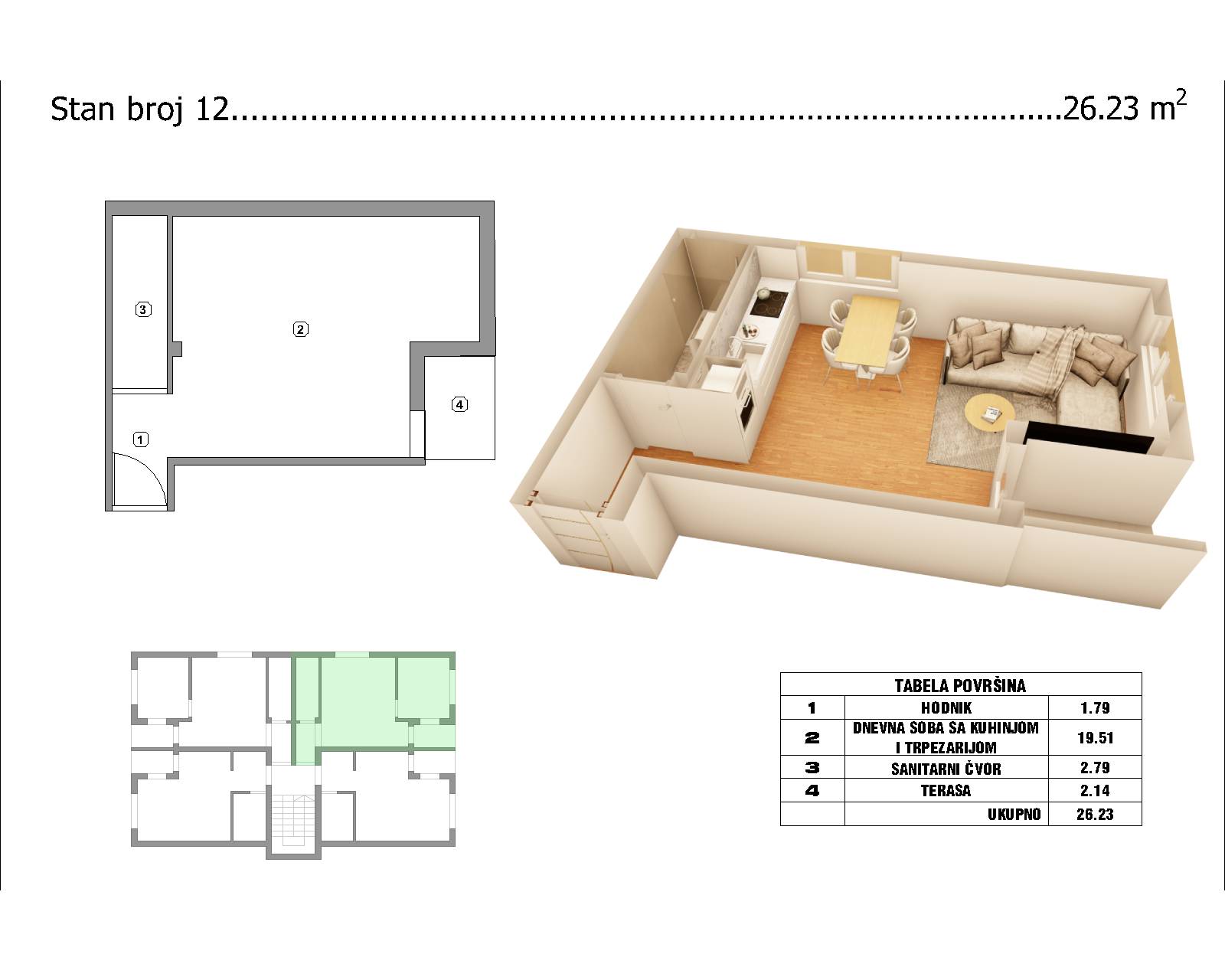 • Sprat: 3, br.stana: 12 cena:47.500,00 €