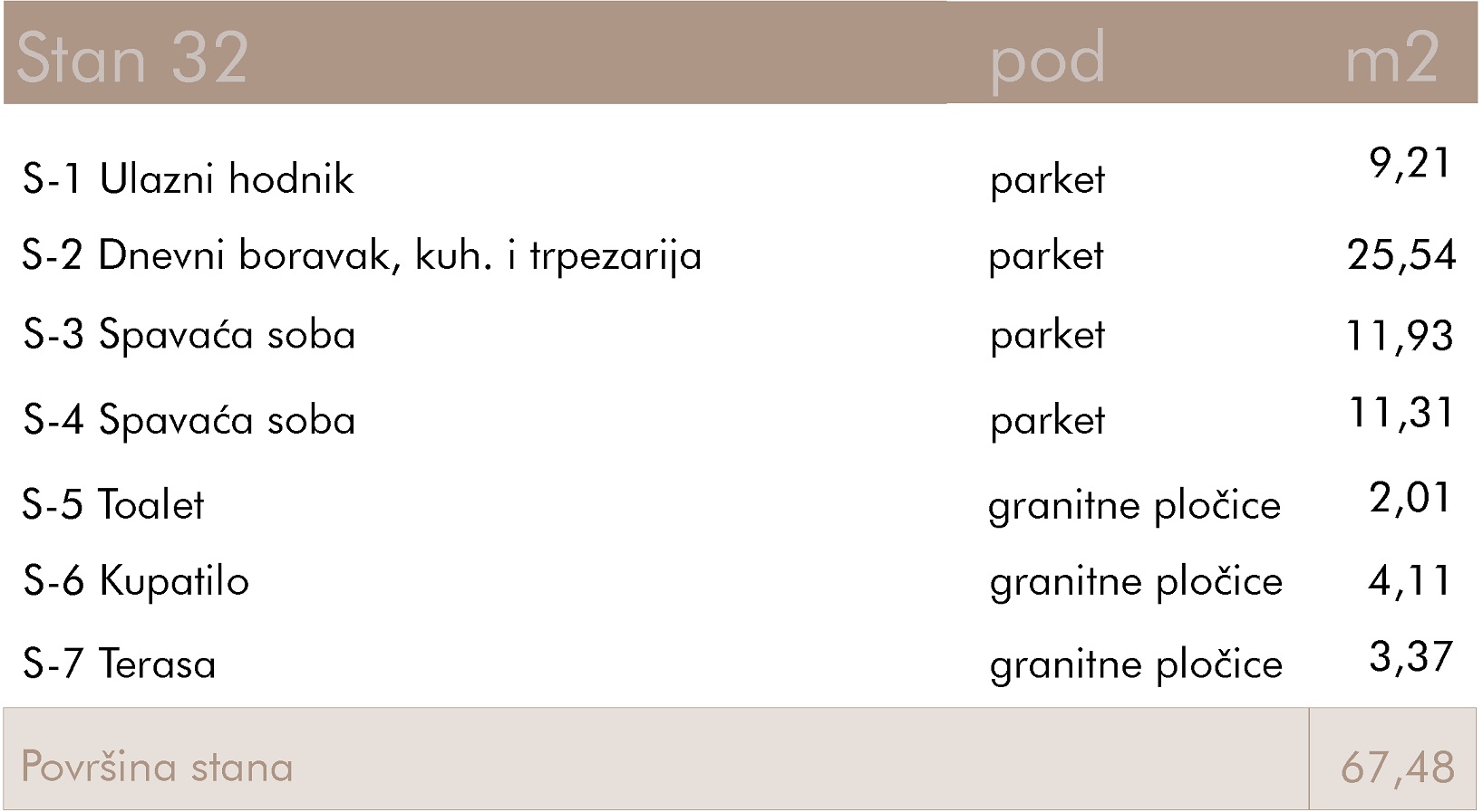 Kvadratura: 67,48m2 (ukupna), 67,48m2 (uknjižena)